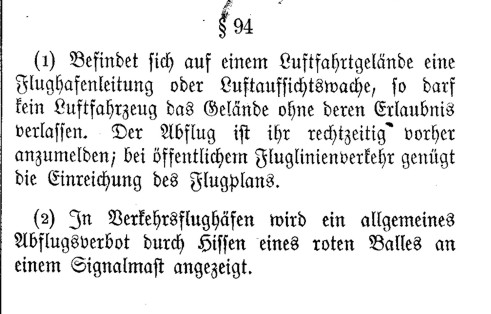 Die ”Luftaufsichtswache” der Nazis, eingeführt 1936 mit dem Luftverkehrsgesetz, § 94 Abs.1