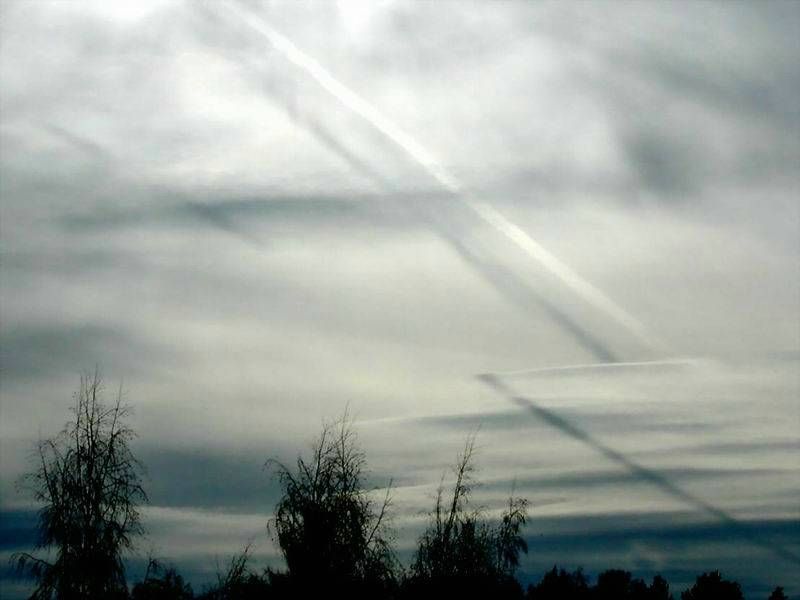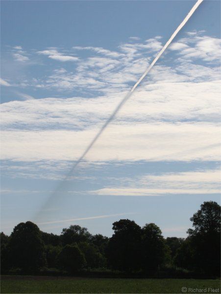 und sie durchblichen nur einige wenige Meter abgeschattete Luft ... Probe: Die Sonne muß sich zu dieser Zeit entlang der Schattenlinie rechts oben (natürlich oberhalb des Kondensstreifens)