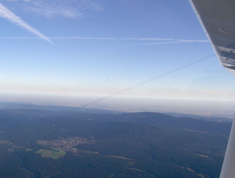 Heute (Mittwoch 9.9.09) früh ca. 8.43-8.45 westlich des Brocken etwas Seltsames beobachtet. Wir waren auf einem Flug mit einer Cessna 172 vom Oppin nach Marl im Ruhrgebiet. In ca. 6500 ft (2150m)