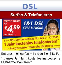 Sie haben schon einen Internetanschluß und möchten den Anbieter wechseln oder auf DSL umsteigen? Neu: Telefonieren in ganz Deutschlan für weniger als 1,- Cent pro Minute !