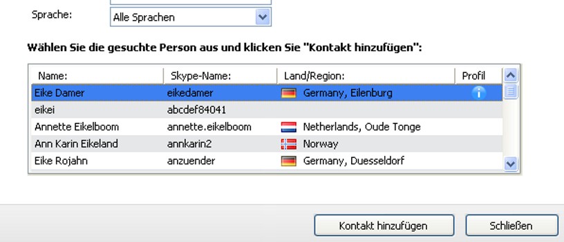Man kann bei “Suche”auf “Details” klicken und dann sich Leute weltweit zum quatschen suchen! Das funktioniert aber nur bei Leuten die das auch wollen. Sie haben dazu den “Skyp Me Modus” aktiviert. Das