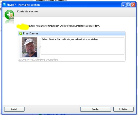 Wenn ich angezeigt werde, dann auf “Skype-Kontakt hinzufügen” klicken.